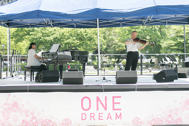 そして2015年、それまで続いてきた「地球ハーモニー」「HIROSHIMA8・6前夜 PEACEコンサート」の思いを受け継ぎ、音楽・パフォーマンス・トークなどあらゆる表現をアートととらえ、様々な人々の夢をアートで束ねる新しい試みとして「ONE DREAM」はうまれました。